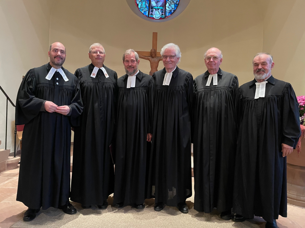 In der Stephanskirche zu Feldrennach trafen sich zu einem besonderen Gottesdienst anlässlich des 7. Oktober 2023 Mitglieder aus dem ›Bekenntniskreis Baden‹ am 7. Oktober – darunter sechs Pfarrer: die beiden Ortsgeistlichen David Gerlach, Matthias Gerlach sowie Dr. Hans-Gerd Krabbe (Achern), Hans-Joachim Scholz (Feldrennach), Erhard Schulz (Meckesheim), Gernot Spelsberg (Ettlingen).